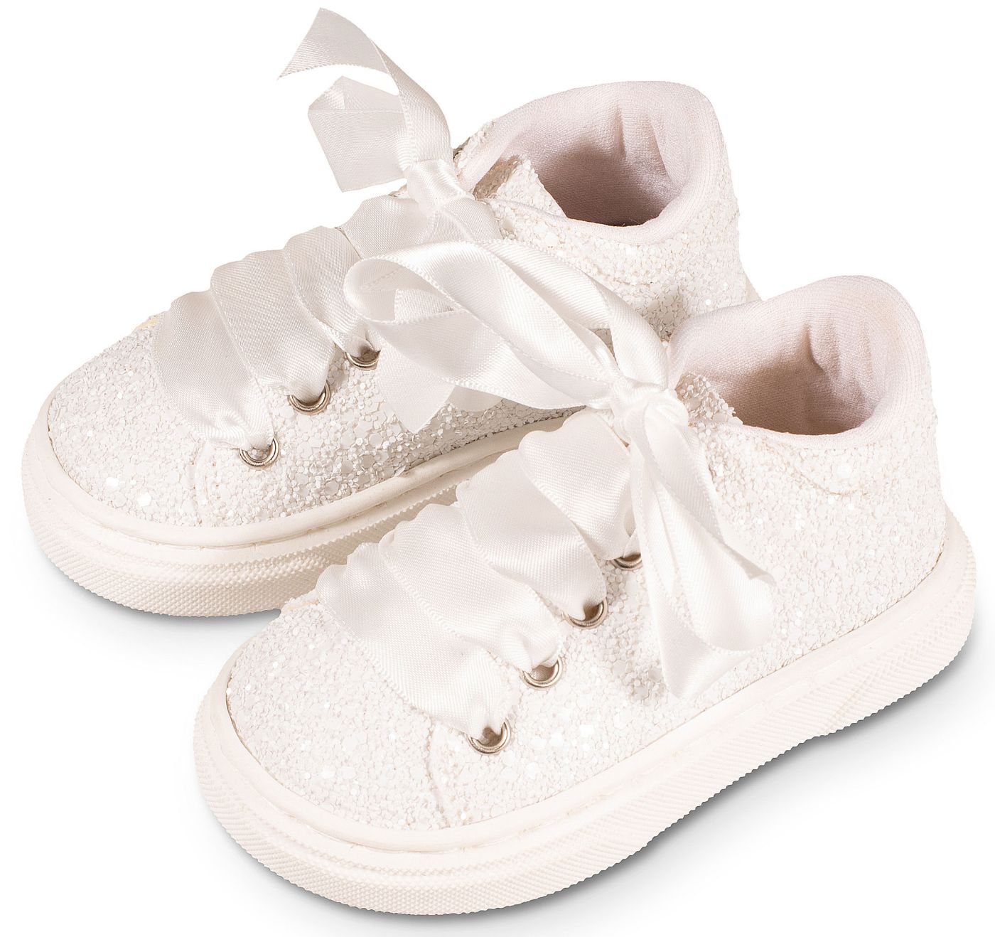 Δετό Σνίκερ από Ύφασμα Γκλίτερ σε Λευκό Χρώμα