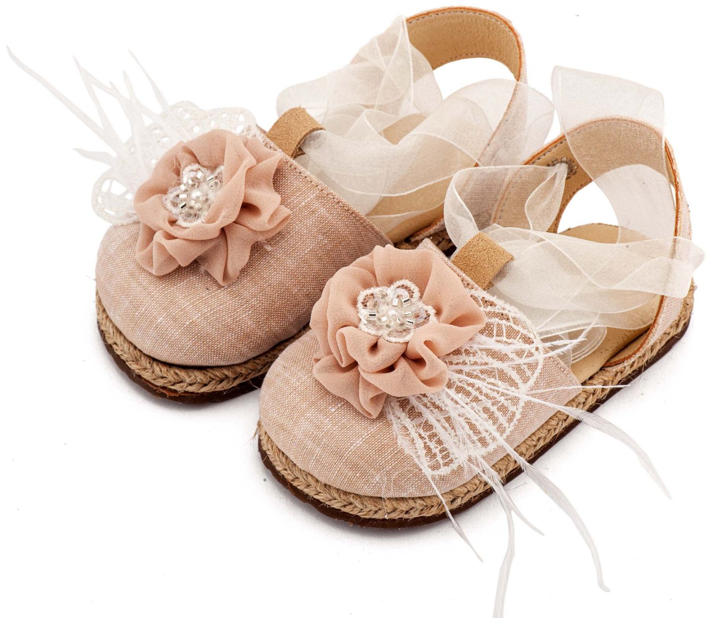 Υφασμάτινη Εσπαντρίγια με Χειροποίητο Διακοσμητικό με Πούπουλα σε Εκρού Νουντ Χρώμα