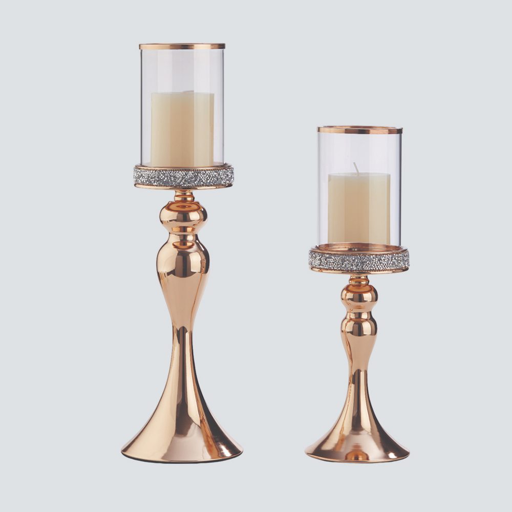 Σετ λαμπάδων γάμου με χρυσά κηροπήγια και γυάλινο επάνω μέρος. Είναι πραγματικά μια εξαιρετική επιλογή για την ημέρα του γάμου σας.