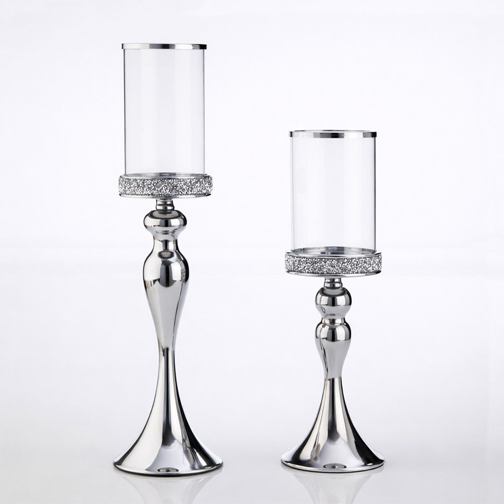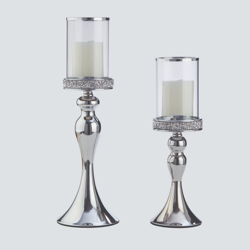 Σετ λαμπάδων γάμου με ασημένια κηροπήγια και γυάλινο επάνω μέρος. Είναι πραγματικά μια εξαιρετική επιλογή για την ημέρα του γάμου σας.