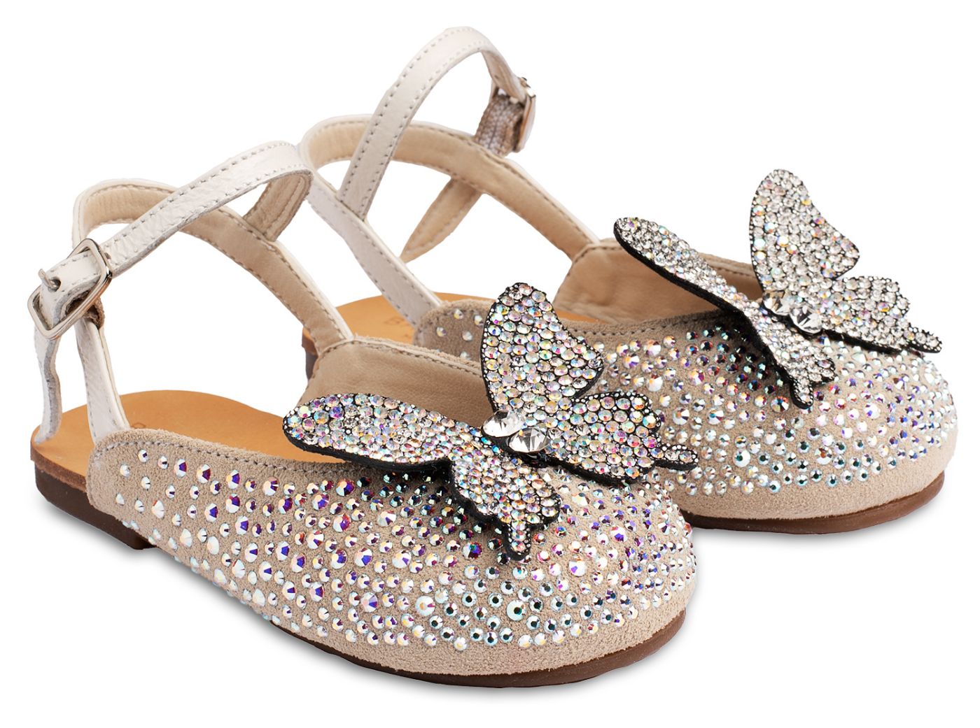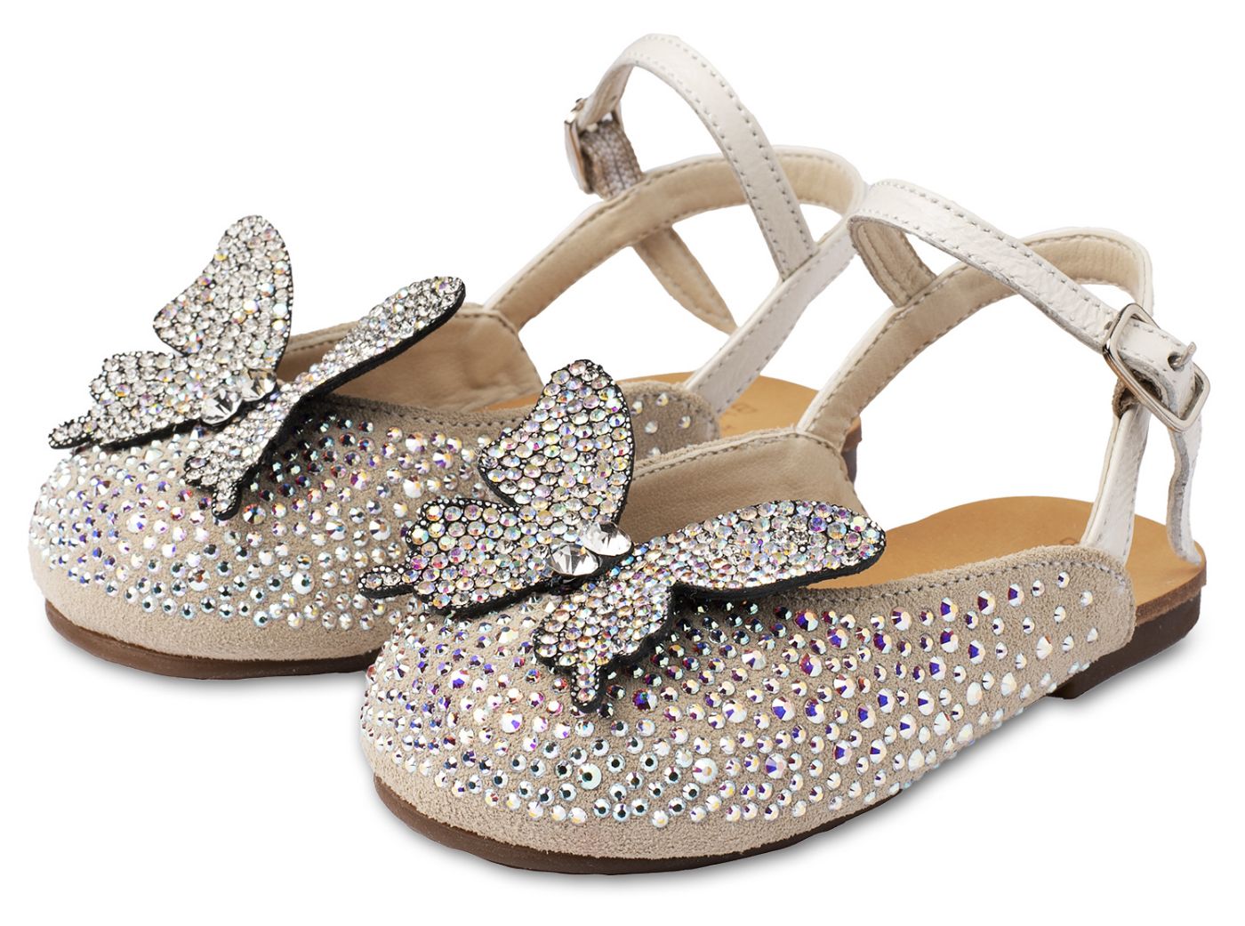Δερμάτινο Σαμπό Διακοσμημένο Ολόγυρα με Στρας και Πεταλούδα σε Εκρού Χρώμα