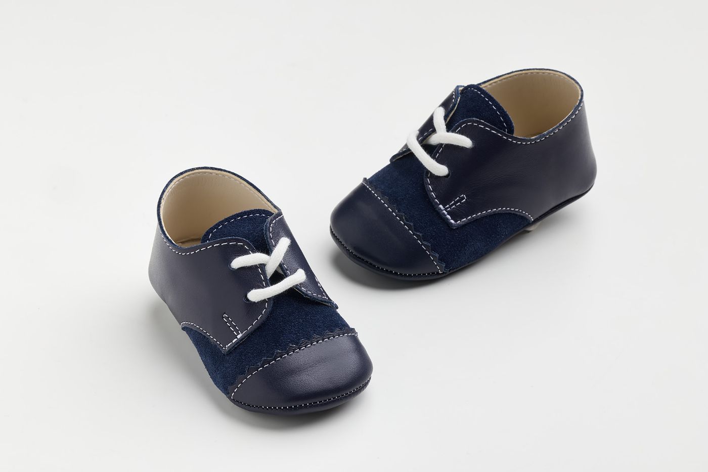 A603M - παπουτσάκι αγκαλιάς σε μπλε λείο δέρμα και μπλε καστόρ δέρμα