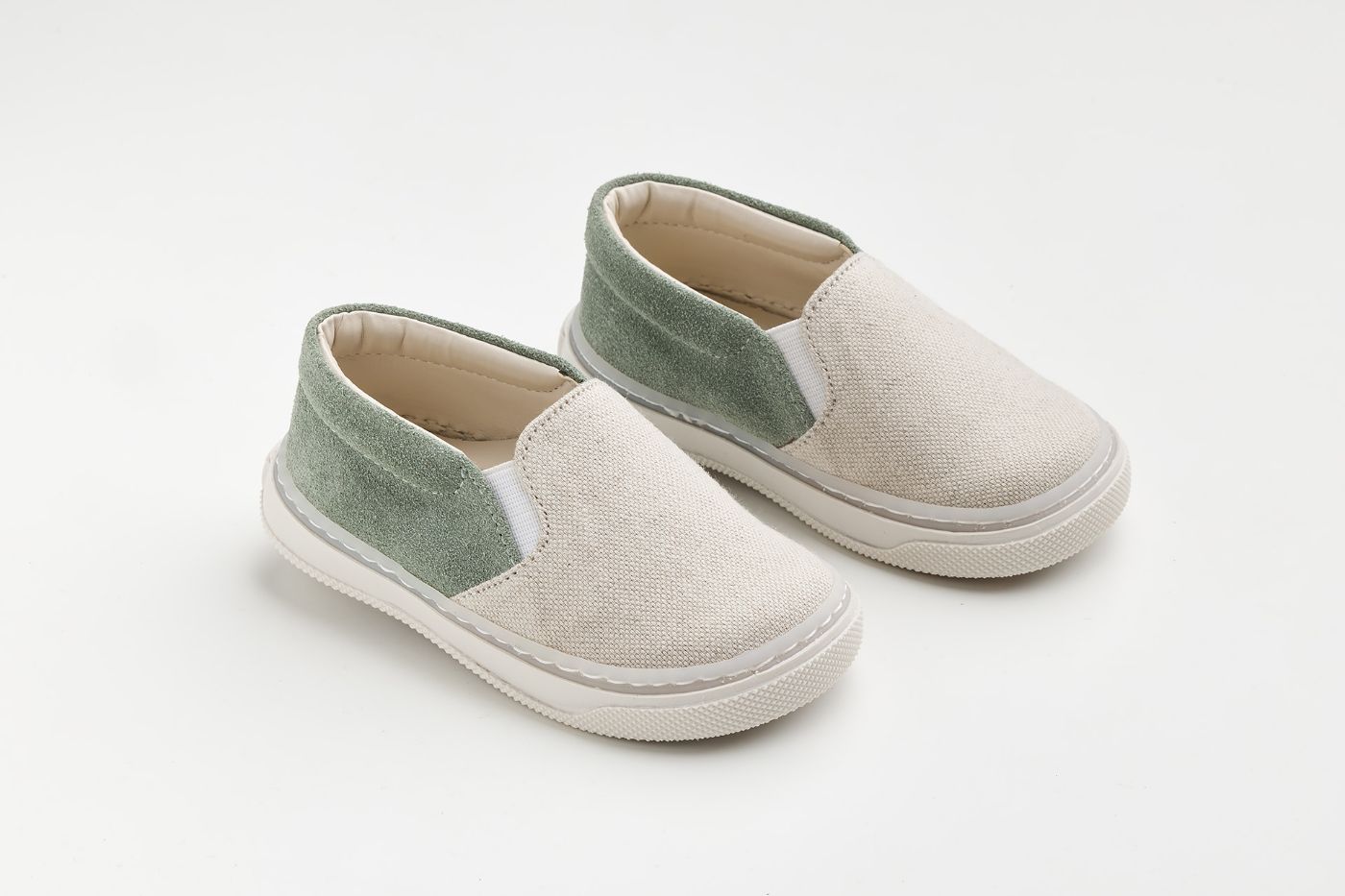 εσπαντρίγια περπατήματος, σε μπεζ ύφασμα και μέντα καστόρ δέρμα