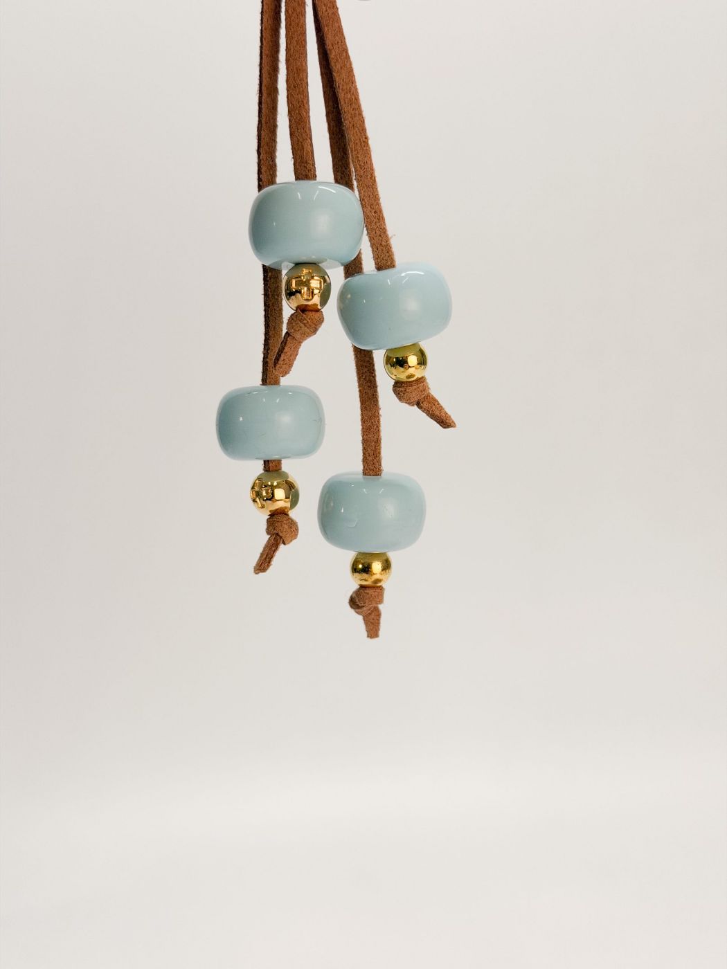 Μαρτυρικό κομπολόι με καφέ σουετ κορδόνι ,γαλάζια χάντρα και επιχρυσωμένο σταυρό.