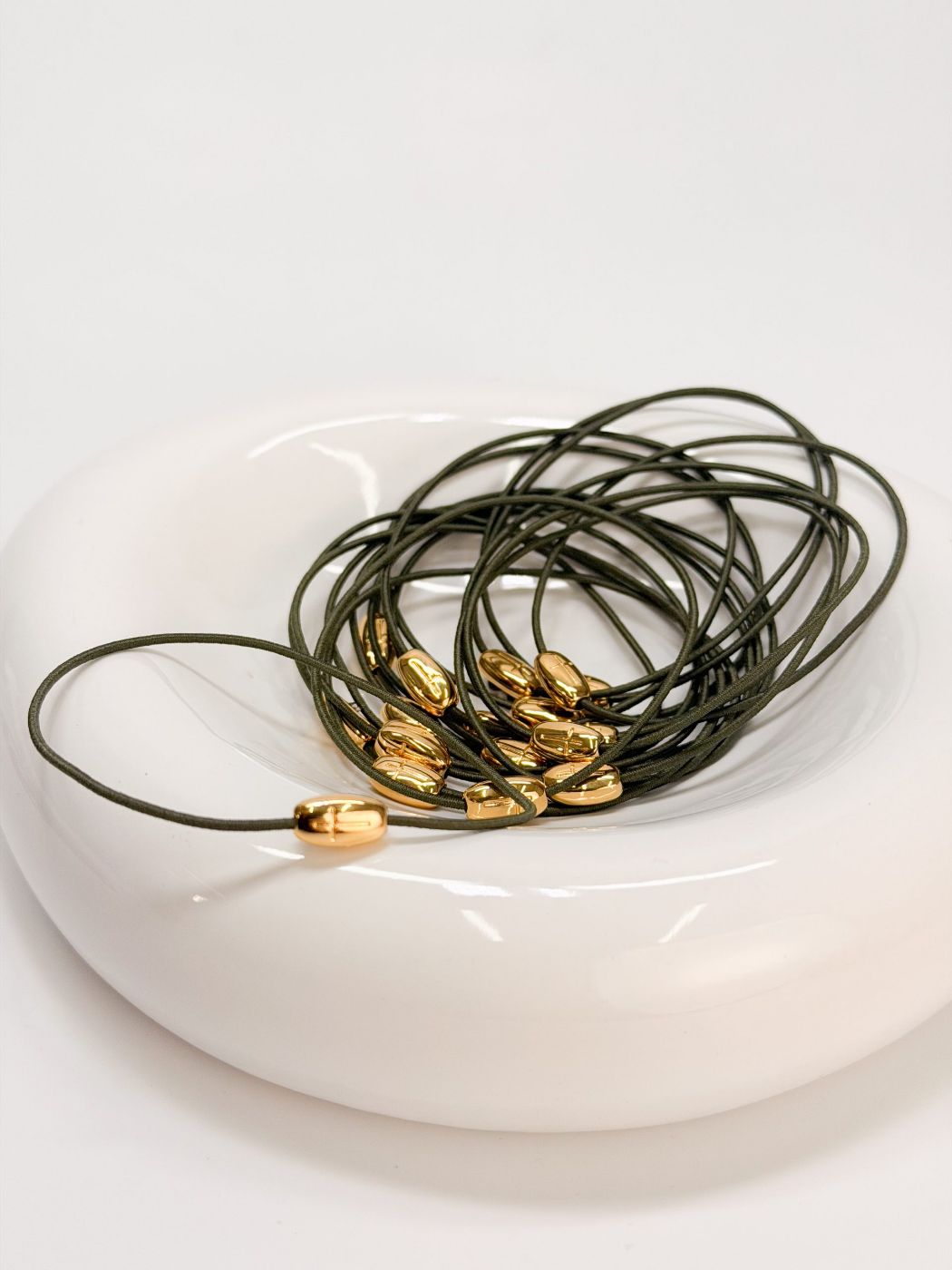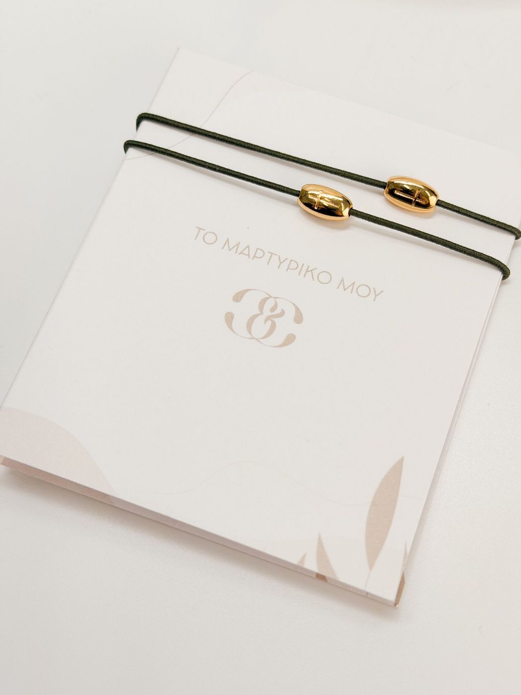 Μαρτυρικό βραχιόλι με ελαστικό κορδόνι σε χακί και επιχρυσωμένο σταυρό.