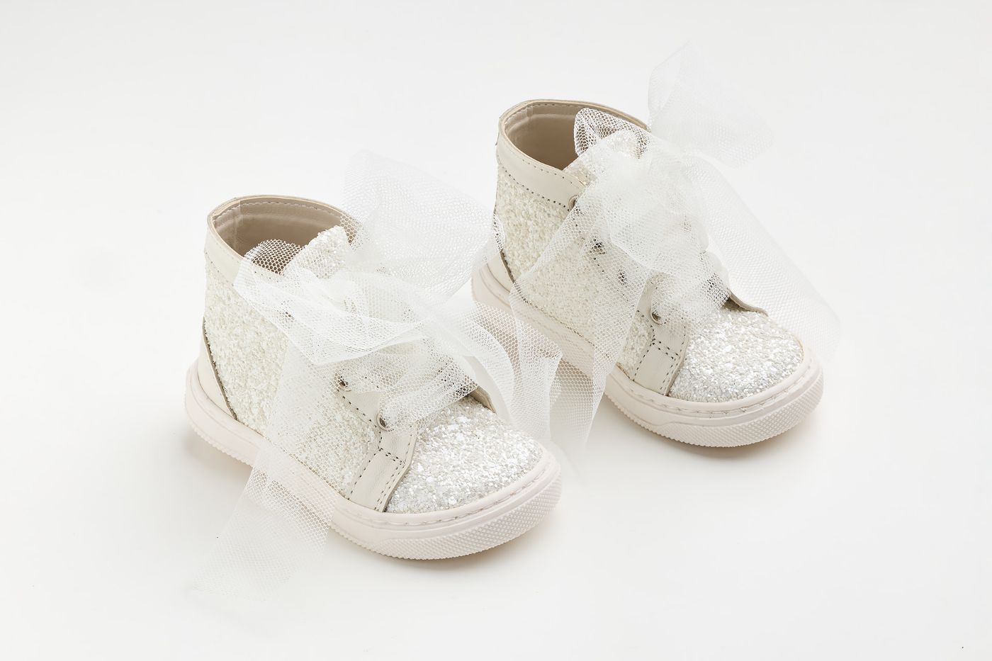 Μποτάκι περπατήματος σε εκρού δέρμα και εκρού γκλίτερ
