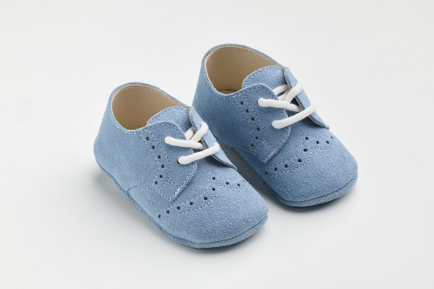 EV205P - παπουτσάκι αγκαλιάς σε γαλάζιο καστόρ δέρμα