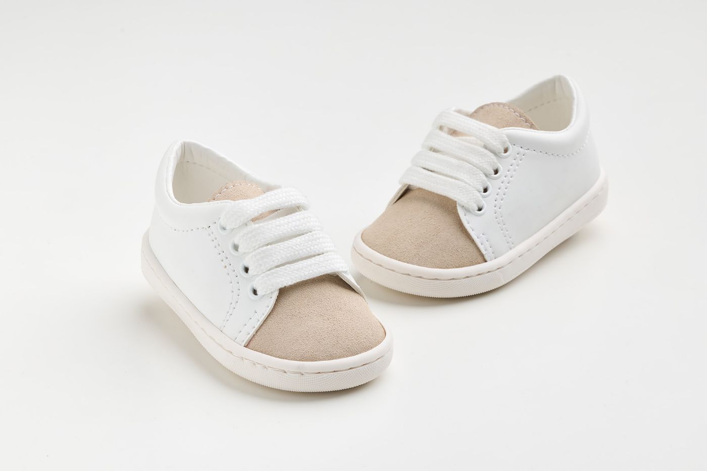 παπουτσάκι σε λευκό δέρμα και μπεζ καστόρ δέρμα
