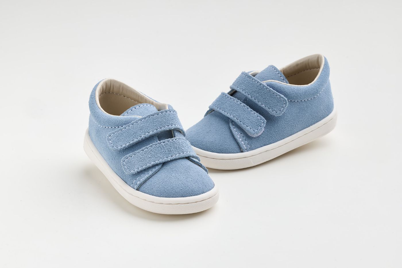παπουτσάκι σε γαλάζιο καστόρ δέρμα, κλείσιμο με Velcro