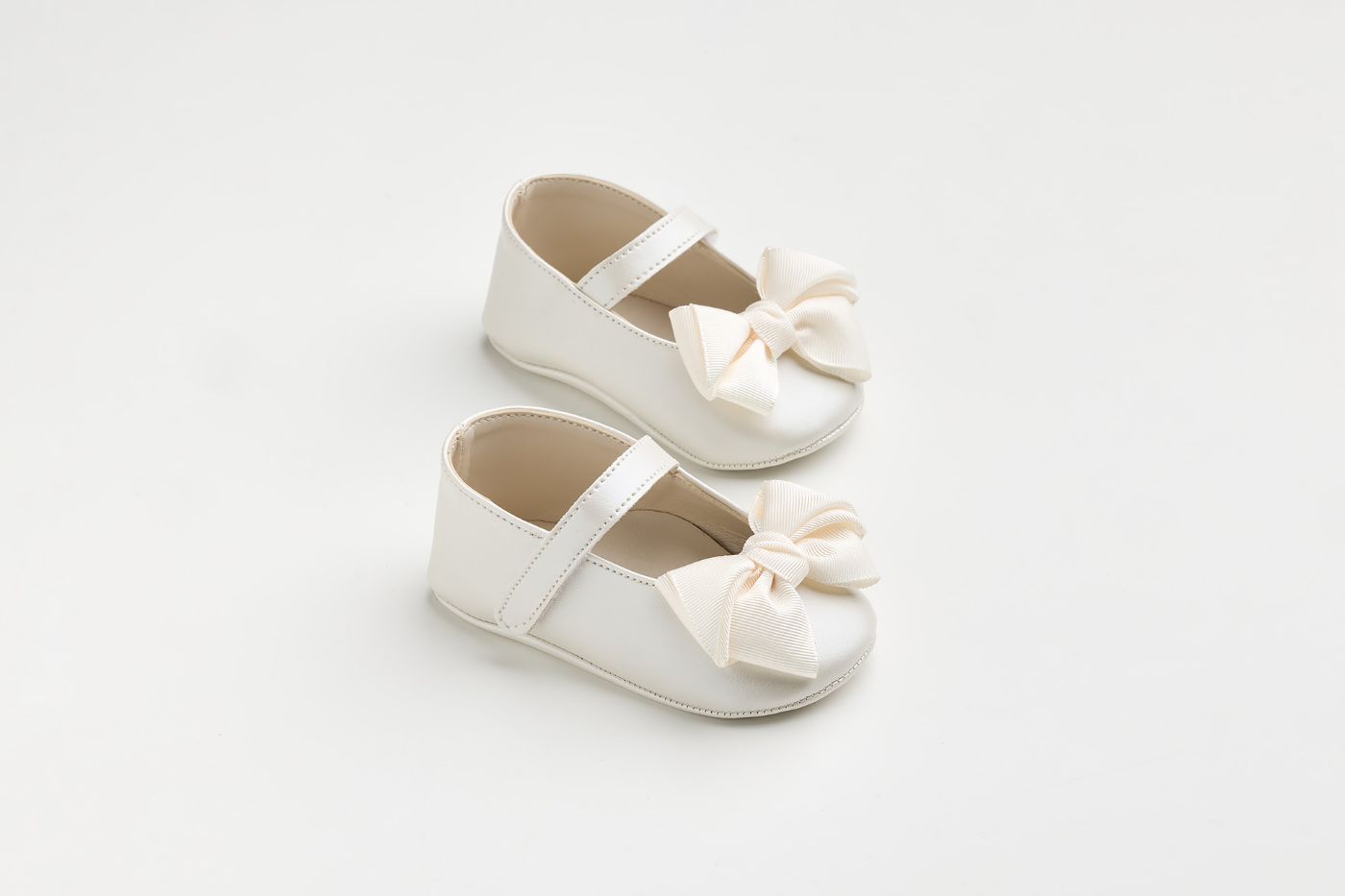 K603E - Μπαλαρίνα αγκαλιάς σε εκρού τεχνόδερμα με χειροποίητο εκρού γκρο φιόγκο
