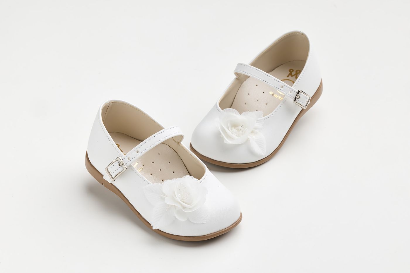 K6104A - Μπαλαρίνα περπατήματος σε λευκό τεχνόδερμα με off white τριανταφυλλάκι