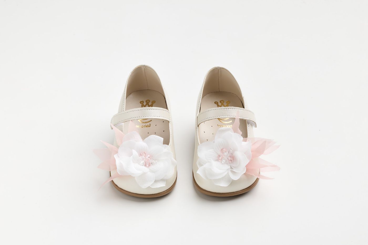 K6116E - Μπαλαρίνα περπατήματος σε εκρού δέρμα με off white Και dusty pink χειροποίητο διακοσμητικό