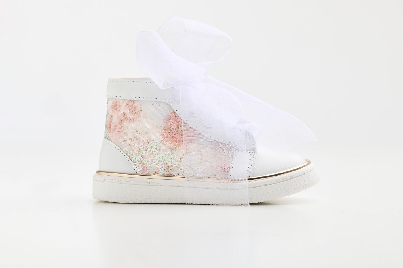K6133A - Μποτάκι περπατήματος σε λευκό δέρμα και διαφάνεια κεντημένη με παγιέτες
