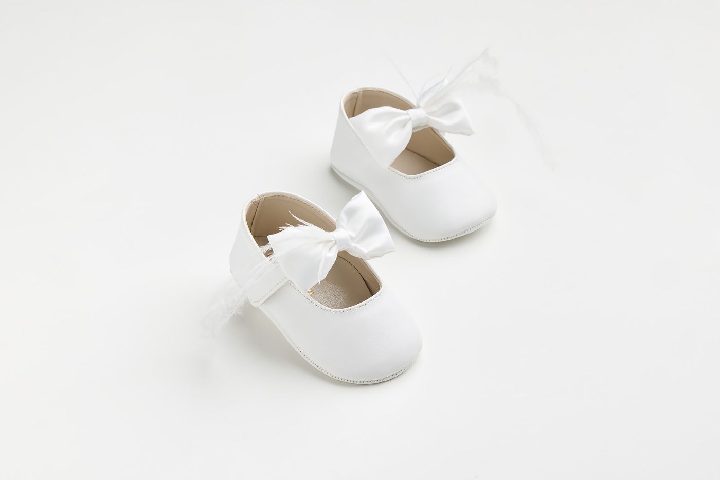 K616A - Μπαλαρίνα αγκαλιάς σε λευκό τεχνόδερμα με χειροποίητο φιόγκο και φτερά