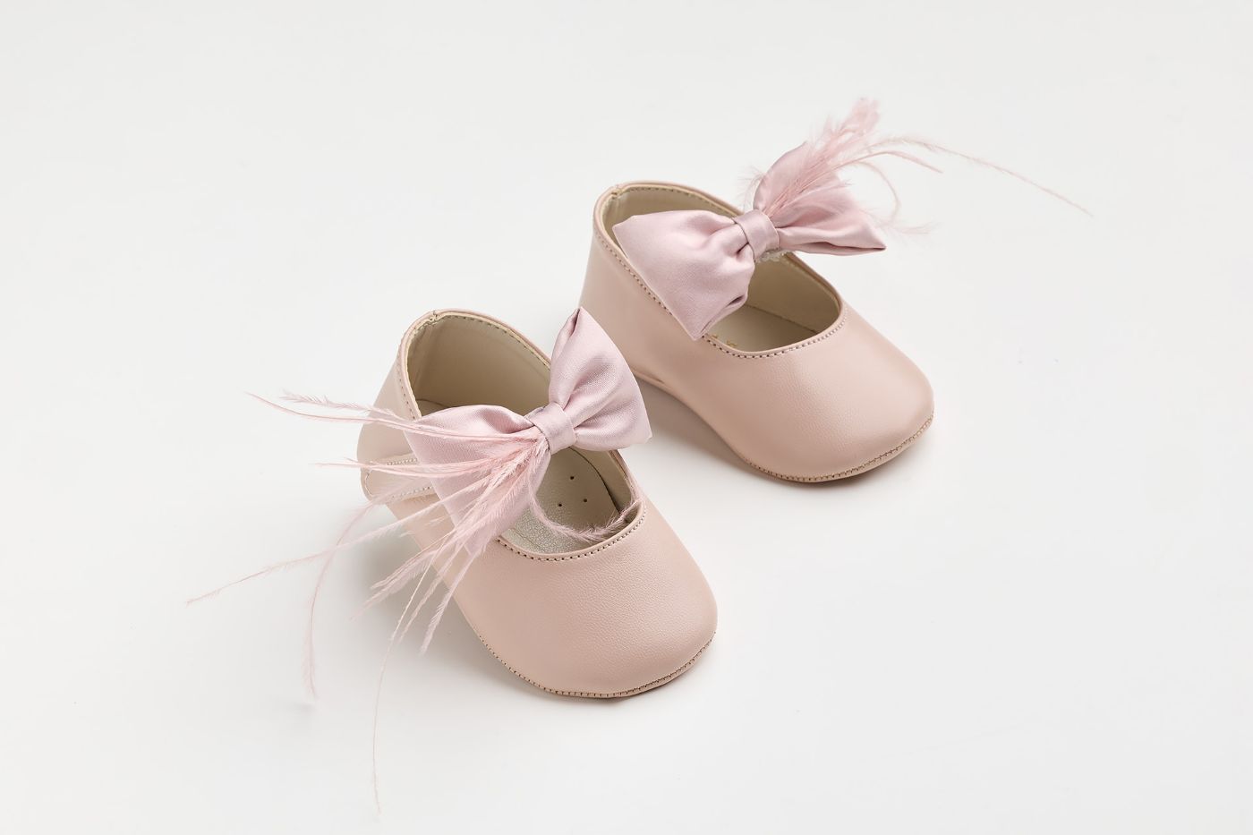 Μπαλαρίνα αγκαλιάς σε ροζ τεχνόδερμα με χειροποίητο φιόγκο και φτερά