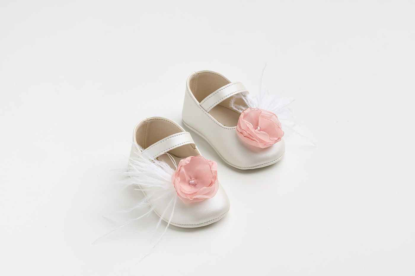 K618P - Μπαλαρίνα αγκαλιάς σε εκρού τεχνόδερμα με χειροποίητο σάπιο μήλο λουλούδι και φτερά