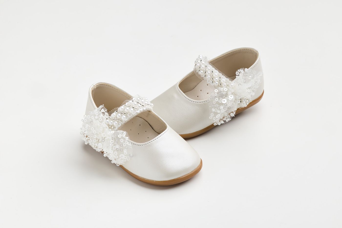 Μπαλαρίνα για τα πρώτα βήματα σε εκρού τεχνόδερμα με πέρλες και παγιέτες