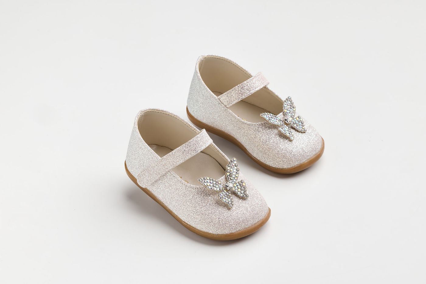 Μπαλαρίνα για τα πρώτα βήματα σε χρυσό γκλίτερ με στρας πεταλούδα