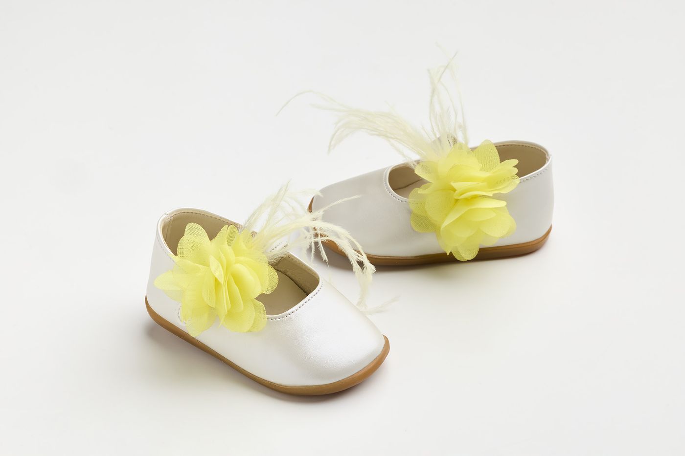 K638K - Μπαλαρίνα για τα πρώτα βήματα με χειροποίητο κίτρινο λουλούδι και φτερά