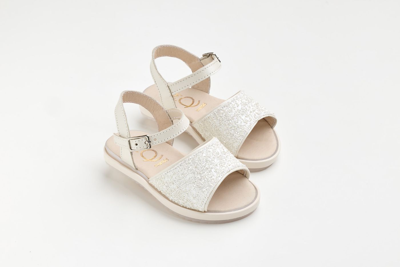 Σανδάλι περπατήματος σε εκρού πέρλα δέρμα και off white ματ γκλιτερ