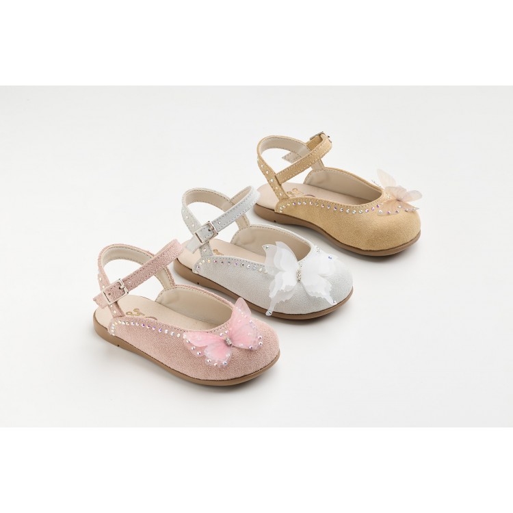 Μπαλαρίνα περπατήματος mule σε ώχρα καστορ με στρας και πεταλούδα