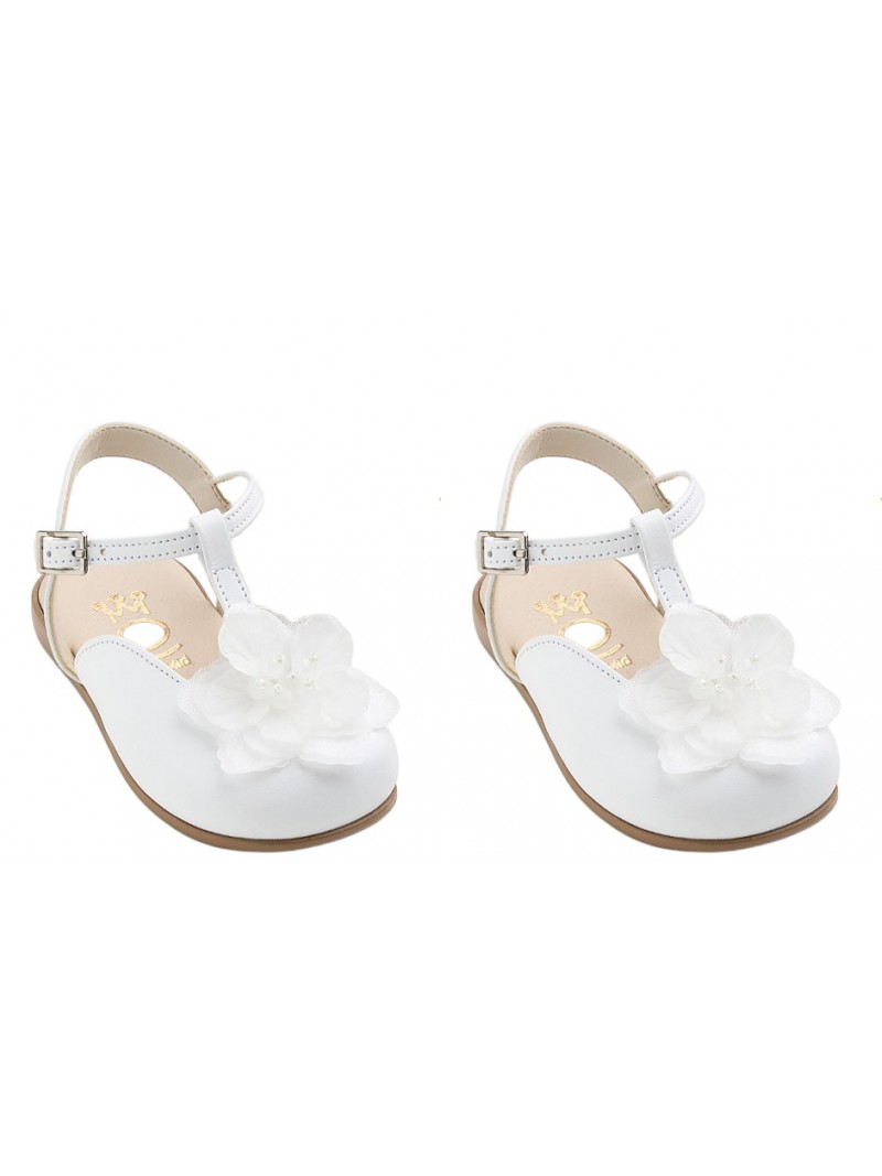 K675A - Μπαλαρίνα περπατήματος mule σε λευκό δέρμα με off white λουλούδι