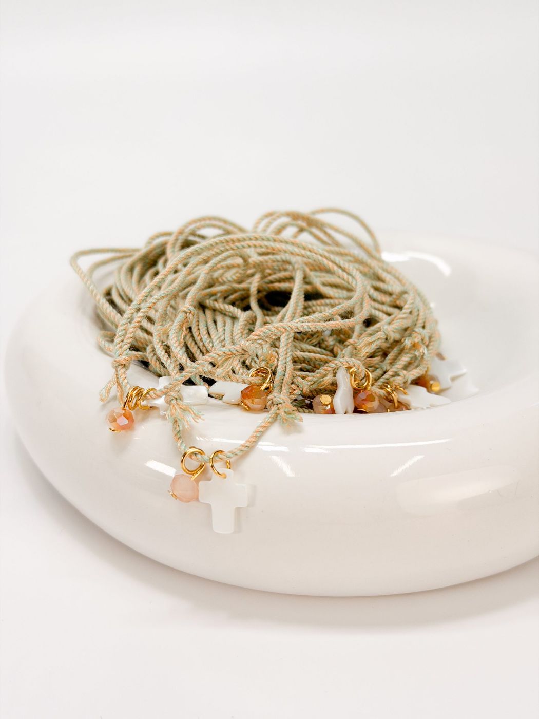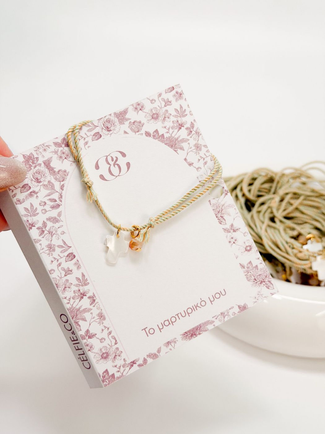 Μαρτυρικό βραχιόλι με δίχρωμο κορδόνι, σταυρό φίλντισι και κρύσταλλο δίχρωμο.