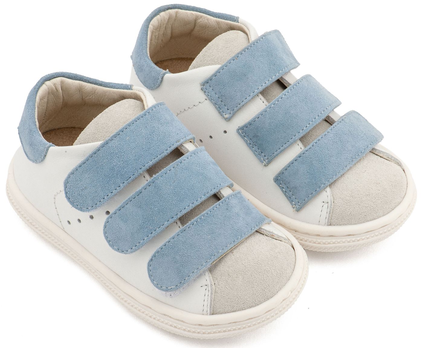 Δερμάτινο Σνίκερ με Τριπλή Μπαρέτα Χρατς σε Λευκό Σιέλ Χρώμα