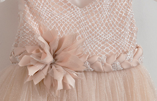 Βαπτιστικό φλορεμα φτιαγμένο από τούλι με ιδιαίτερο σχέδιο από ασημί γκλίτερ και λαιμόκοψη σε σχήμα καρδιάς. Η φούστα είναι ασύμμετρη, πιο μακριά πίσω, επίσης στολισμένη με ασημί γκλίτερ για έξτρα λάμψη. Διαθέτει ζωνάκι πλεξούδα στη μέση από σατέν και τούλι με γκλίτερ που δένει πίσω, καθώς και ένα εντυπωσιακό χειροποίητο λουλούδι. Το φόρεμα διαθέτει ασορτί μπαντάνα για τα μαλλιά με παρόμοιο στολισμό.