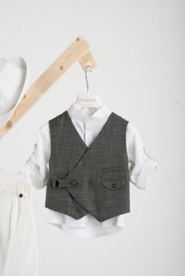 Βαπτιστικό κοστούμι Piccolino Jose σε χρώμα White. Περιλαμβάνει σταυρωτό λινό γιλέκο με διακοσμητικά μεταλικά κουμπια και ιμάντα με D δέσιμο, πουκάμισο mao λινό, παντελόνι λινό βράκα με πιέτες με διακοσμητικό κρεμαστό με χάντρες σε χρώμα white, φουλάρι και καπέλο με φάσα. Διαθέσιμο σε 4 μεγέθη 6-12, 12-18, 18-24, 24-36 (εξτρά χρέωση)