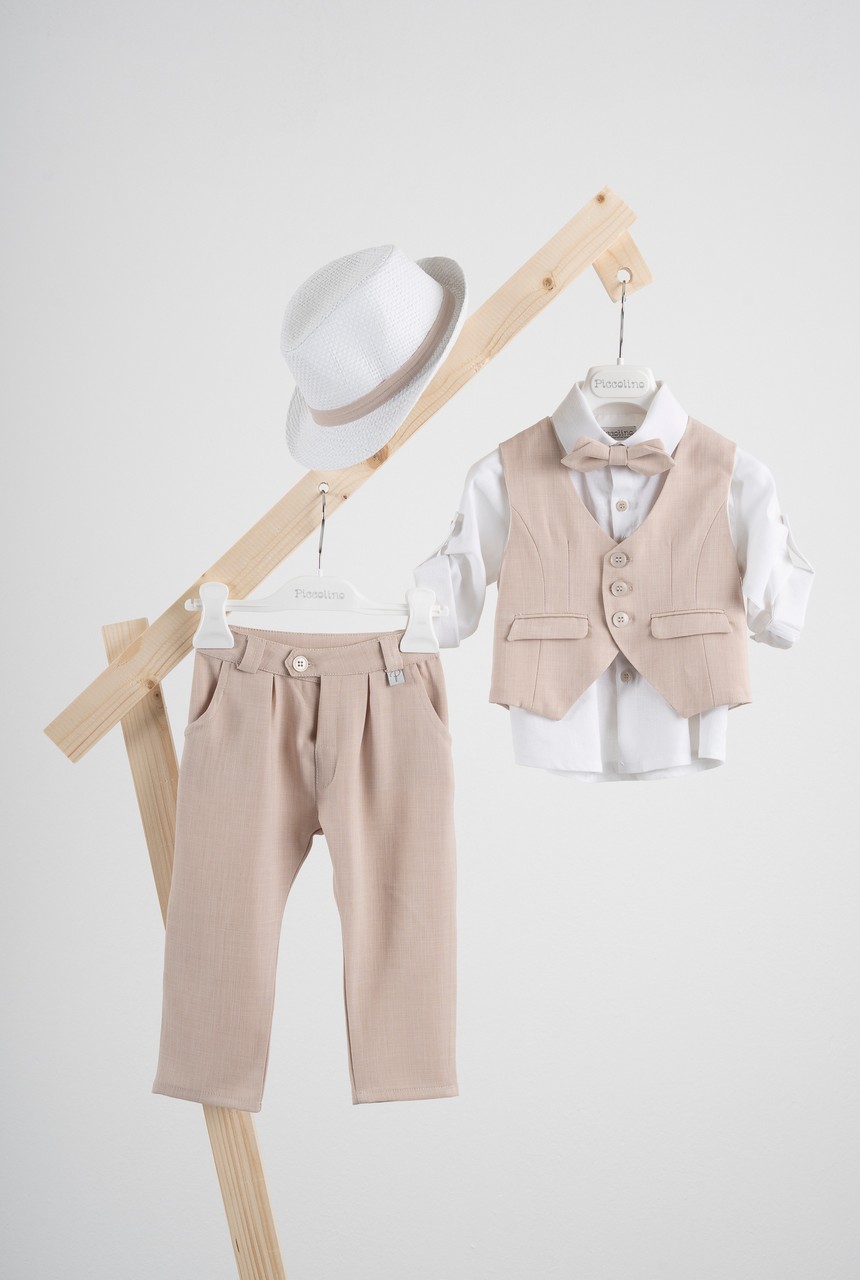 Βαπτιστικό κοστούμι Piccolino Rodrigo σε χρώμα Redwood. Περιλαμβάνει κλασάτο γιλέκο, πουκάμισο λινό, παντελόνι σε χρώμα redwood με πιέτες, παπιγιόν διπλό με μύτες και καπέλο με φάσα. Διαθέσιμο σε 4 μεγέθη 6-12, 12-18, 18-24, 24-36 (εξτρά χρέωση)