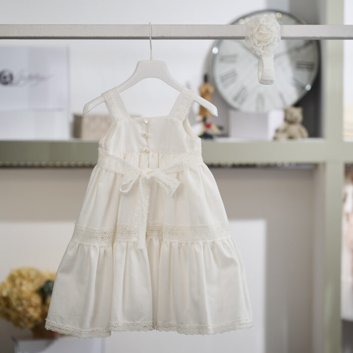 Η διακριτική κομψότητα και η διαχρονική αισθητική συναντούν την απλότητα σε αυτό το ιδιαίτερα καλαίσθητο βαπτιστικό φόρεμα σε ιβουάρ απόχρωση, από μαλακό βαμβακερό, λινό ύφασμα. Ο λιτός σχεδιασμός συνδυάζεται με ρομαντικές δαντελένιες λεπτομέρειες, δημιουργώντας ένα αποτέλεσμα που αποπνέει φινέτσα.