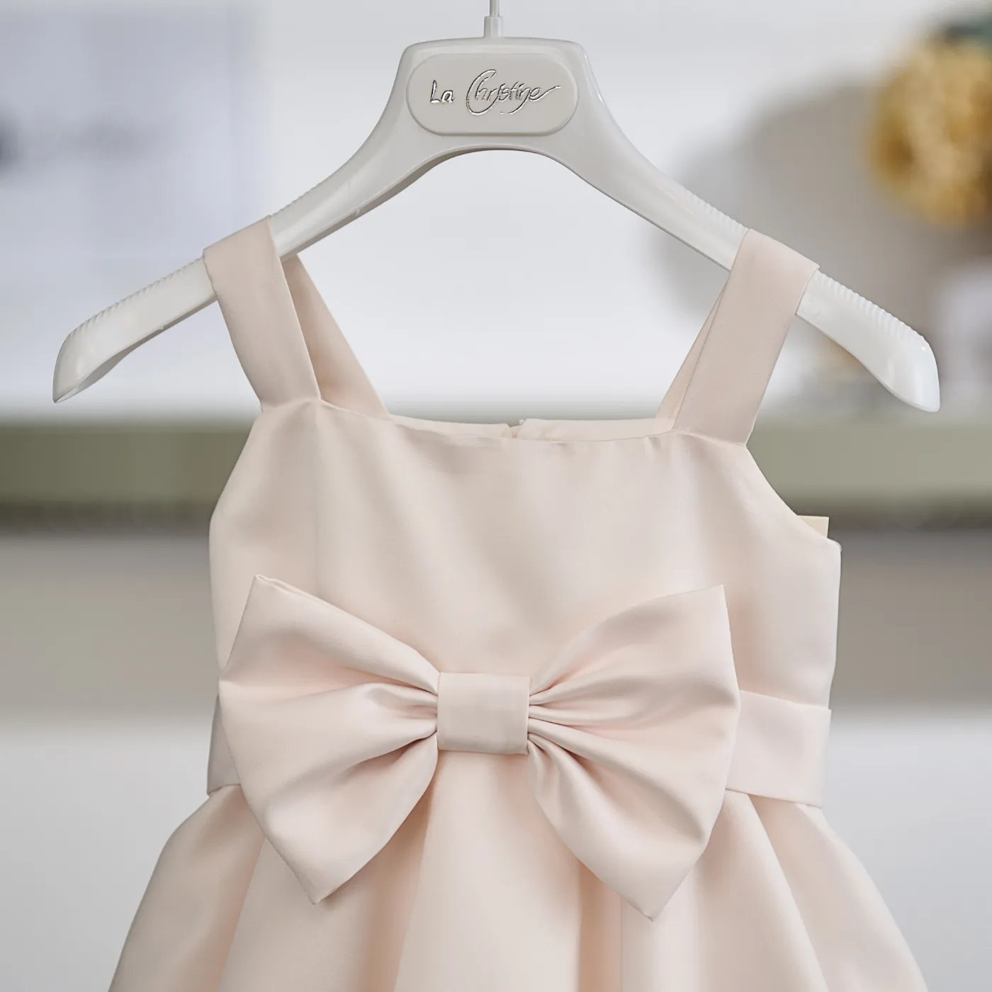 Η διακριτική κομψότητα και η minimal αισθητική χαρακτηρίζουν αυτό το ιδιαίτερα καλαίσθητο βαπτιστικό φόρεμα σε απαλή βανίλια απόχρωση. Το κορσάζ είναι σχεδιασμένο από σατέν ύφασμα με καθαρές γραμμές και τιράντες, χαρίζοντας μια κομψή και διαχρονική εμφάνιση.