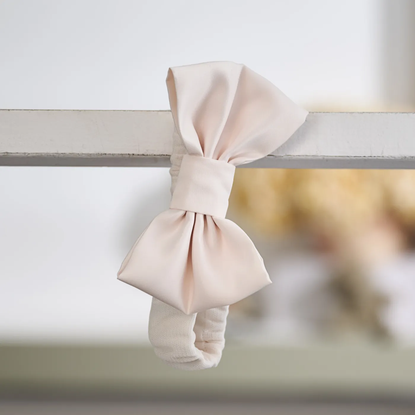 Το σύνολο συμπληρώνεται από ασορτί κορδέλα μαλλιών διακοσμημένη με σατέν φιόγκο στην ίδια απόχρωση, ολοκληρώνοντας κομψά την εμφάνιση.