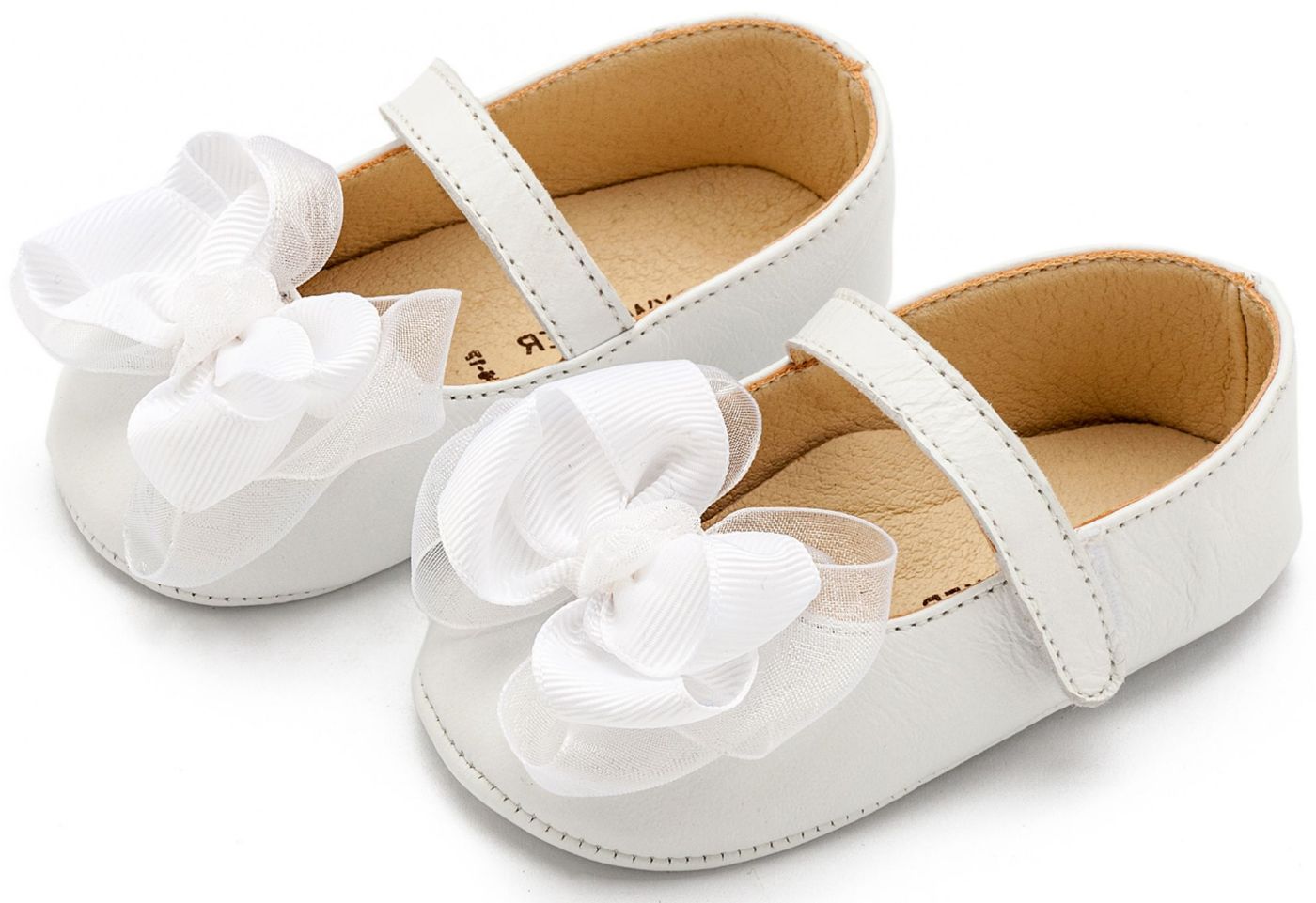 Δερμάτινο Γοβάκι Μονή Μπαρέτα με Υφασμάτινο Χειροποίητο Φιογκάκι σε Λευκό Χρώμα