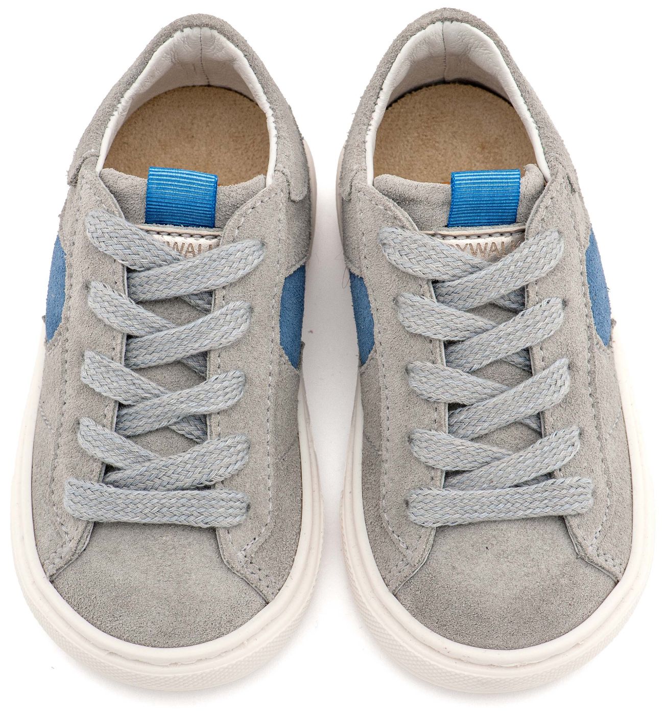 Δερμάτινο Δίχρωμο Sneaker Δετό σε Γκρι Μπλε Ρουά Χρώμα