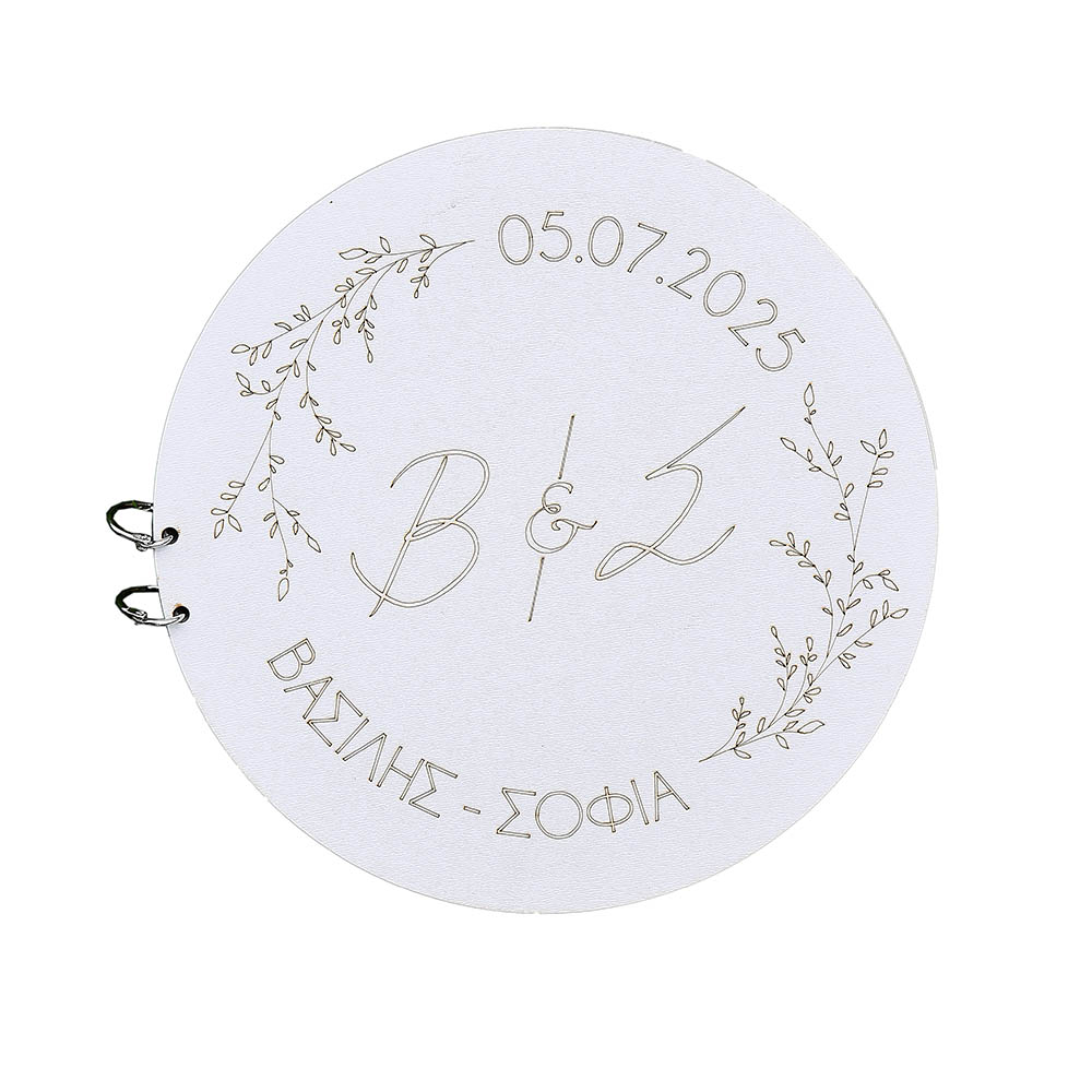 Ξύλινο στρογγυλό βιβλίο ευχών γάμου με προσωποποιημένη χάραξη (στα σχόλια της παραγγελίας να αναγράφεται ημερομηνία καθώς και τα ονόματα του ζευγαριού)