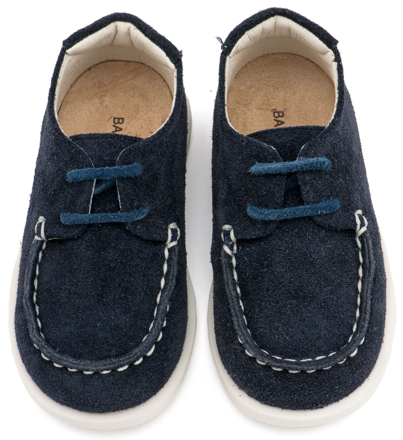 Καστόρινο Δετό Μοκασίνι με Δερμάτινο Κορδόνι σε Μπλε Χρώμα