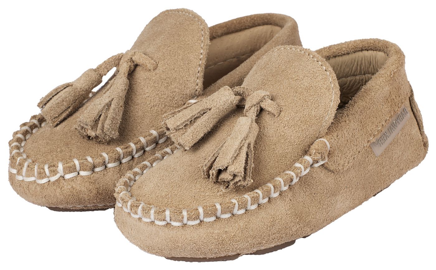 Καστόρινο Μοκασίνι με Φουντάκια από Δέρμα Κρούτα Suede σε Μπεζ Χρώμα
