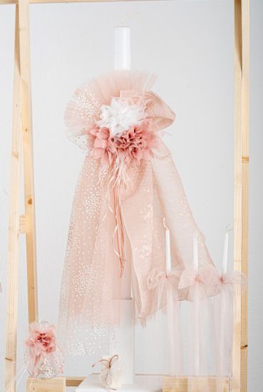 Βαπτιστικό πακέτο Piccolino Beatrice puce περιλαμβάνει φόρεμα ,σετ λαδόπανα, λαμπάδα, λαδοσετ και στολισμένη τσάντα