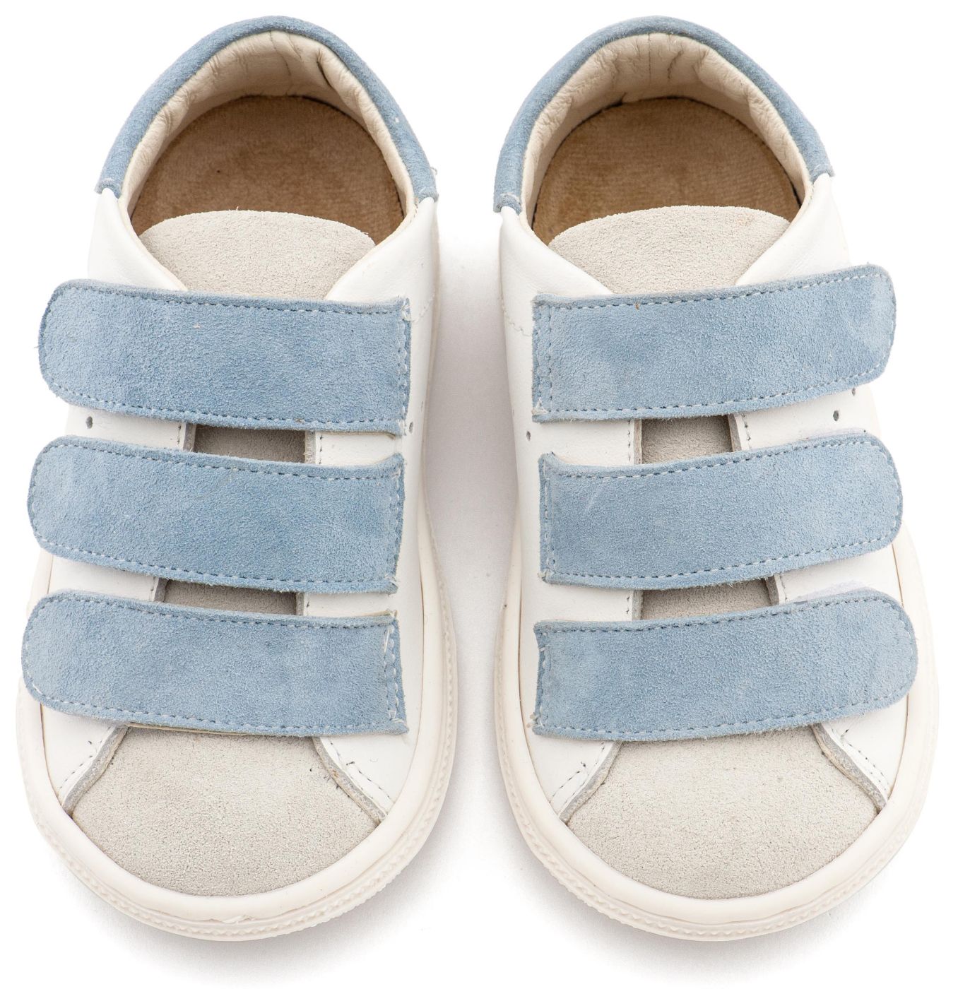 Δερμάτινο Σνίκερ με Τριπλή Μπαρέτα Χρατς σε Λευκό Σιέλ Χρώμα