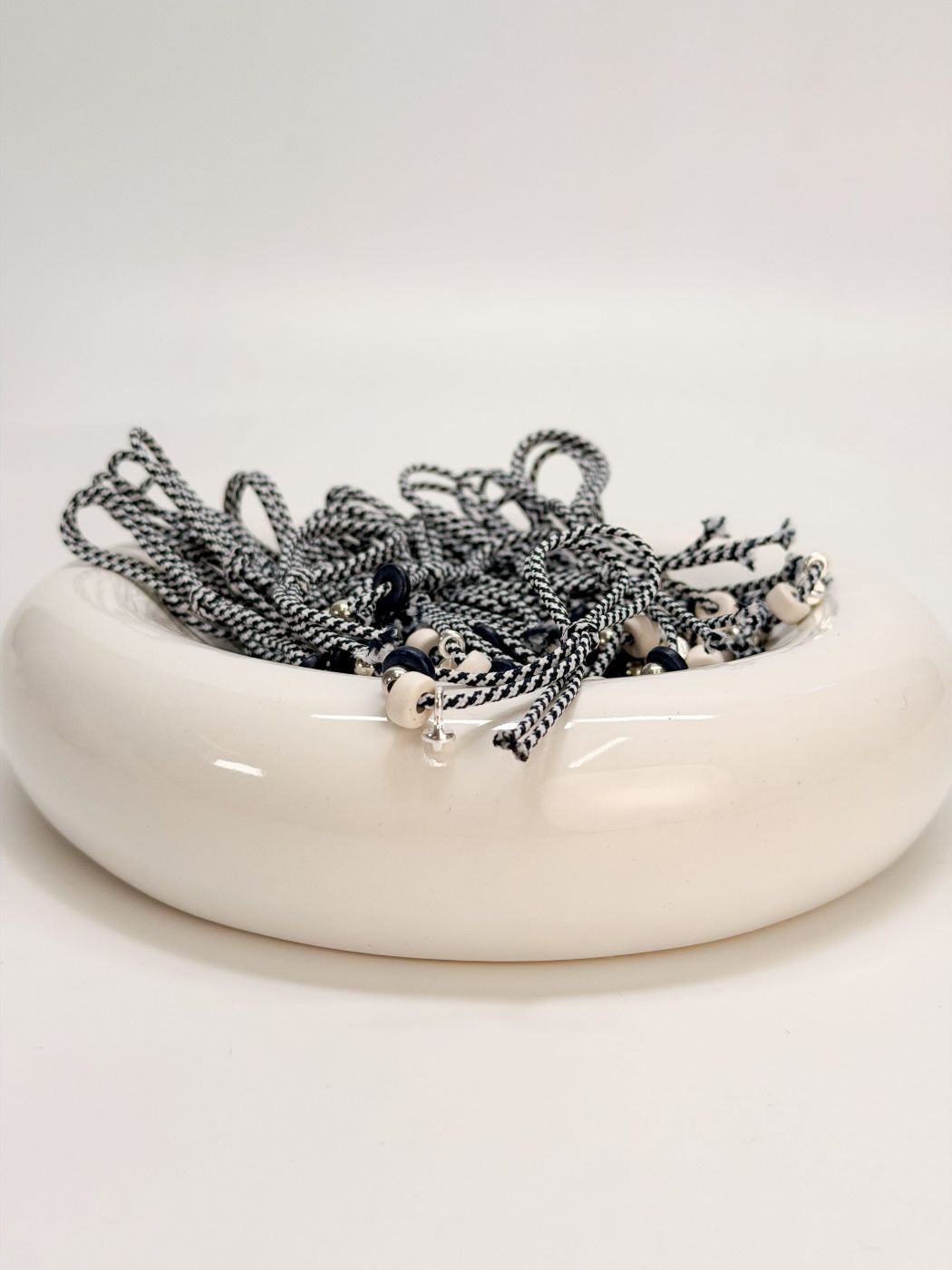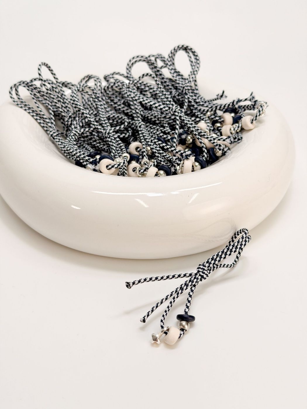 Μαρτυρικό πέτο με δίχρωμο κορδόνι μπλε σκούρο και άσπρο,κεραμικές χάντρες,σταυρό και χάντρα σε ασημί απόχρωση.