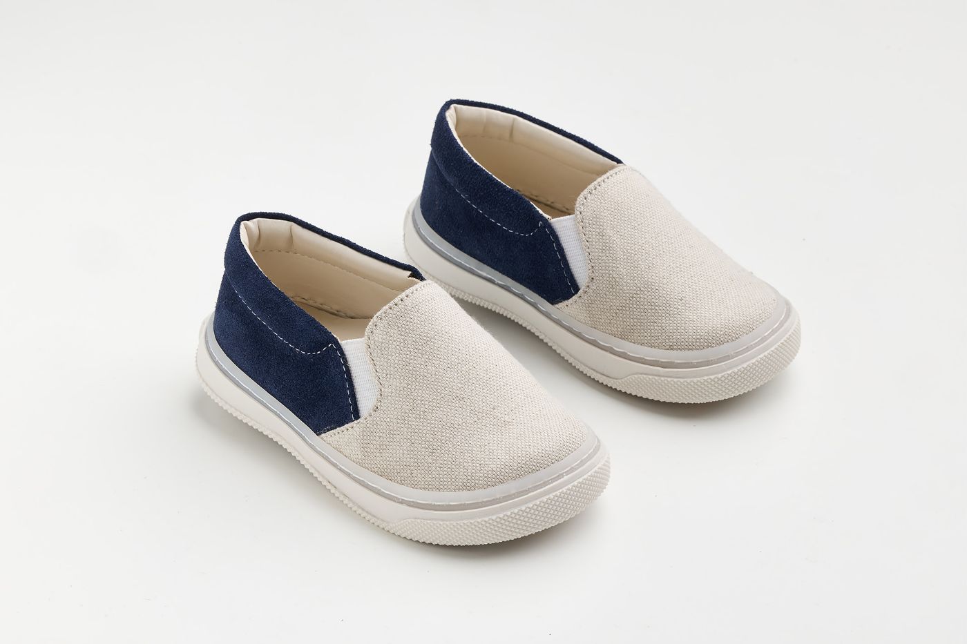 Εσπαντρίγια περπατήματος, σε μπεζ ύφασμα και μπλε καστόρ δέρμα