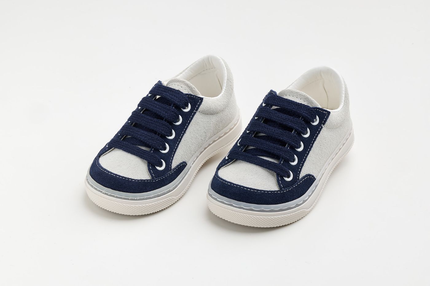 A626M - παπουτσάκι περπατήματος σε λευκό και μπλε καστόρ δέρμα