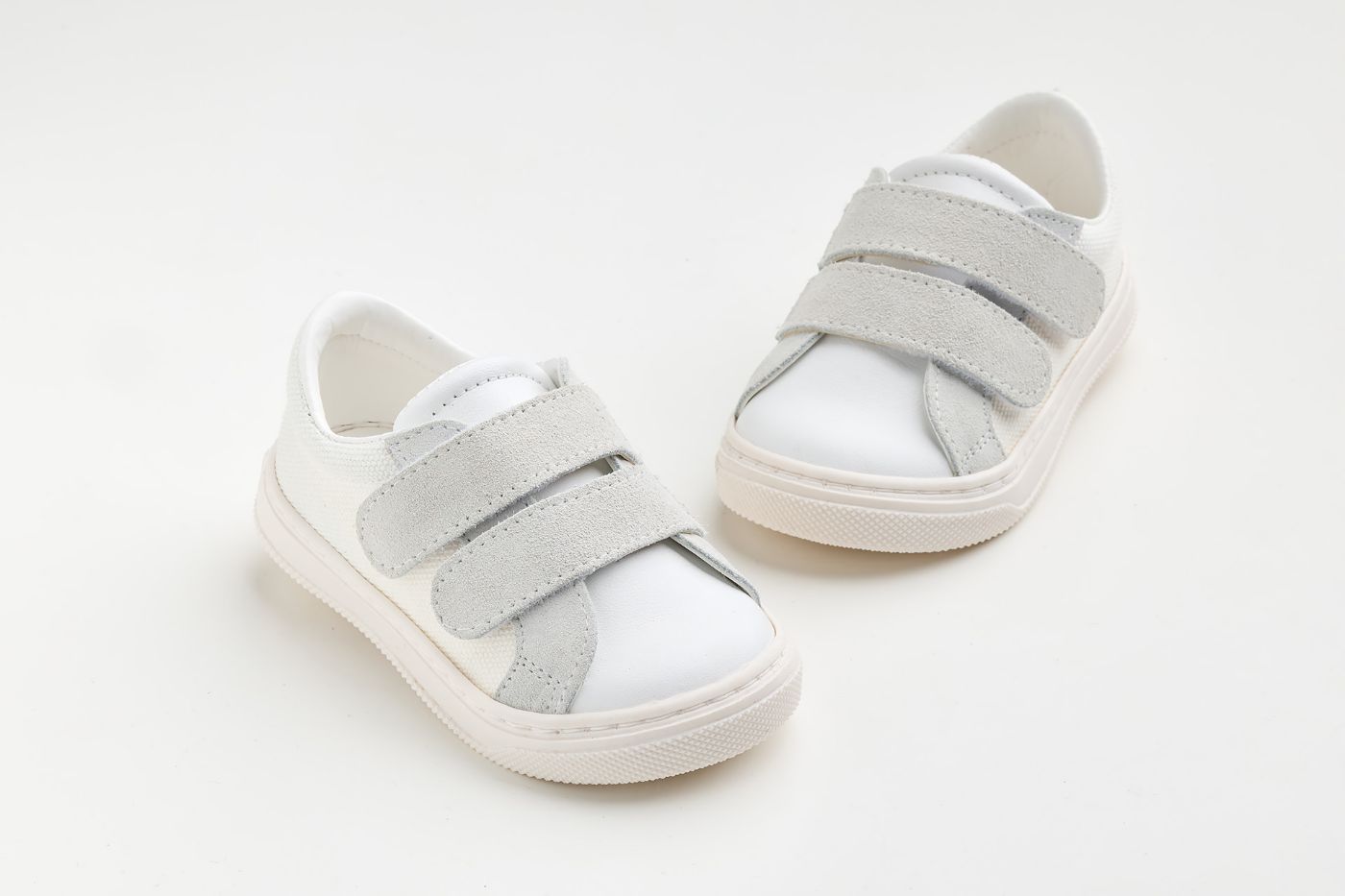Παπουτσάκι περπατήματος σε λευκό ύφασμα, λευκό καστόρ και λείο Δέρμα