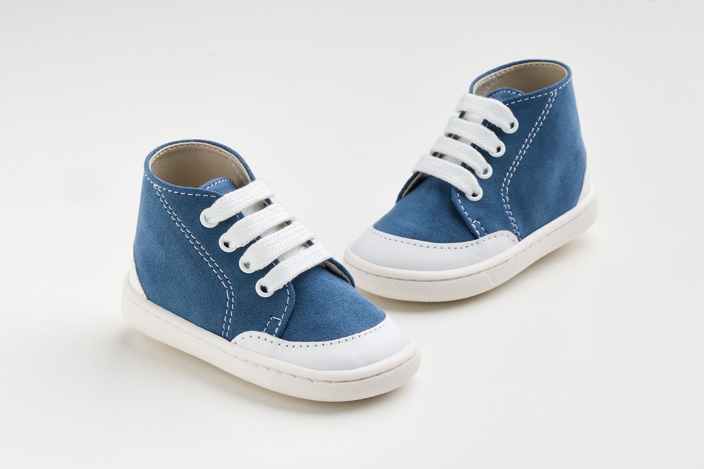 Μποτάκι σε μπλε συνθετικό καστόρ και λευκό λείο δέρμα, για τα πρώτα βήματα του μωρού σας