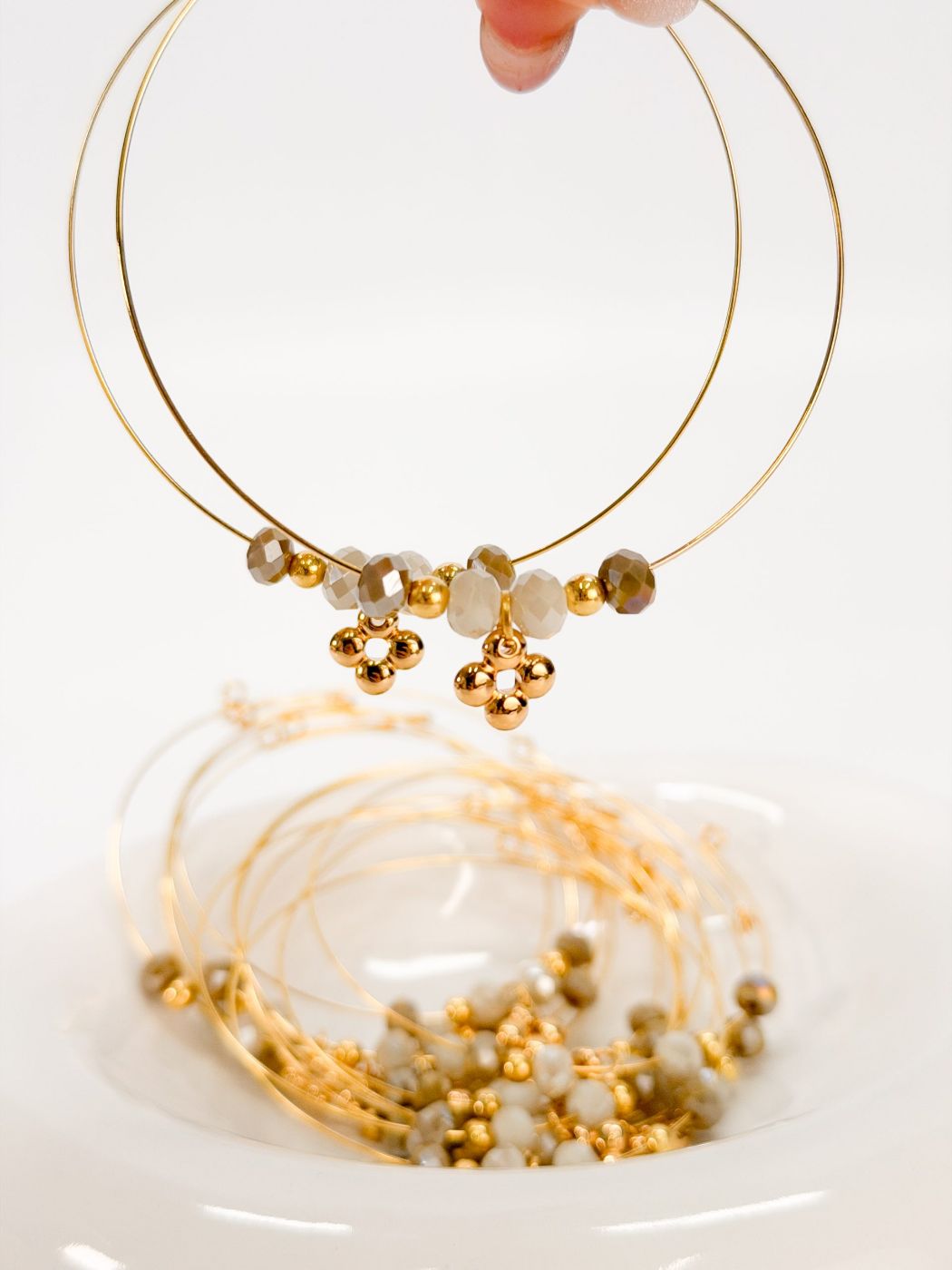 Μαρτυρικό βραχιόλι με memory wire, κρύσταλλα και επιχρυσωμένο σταυρό.