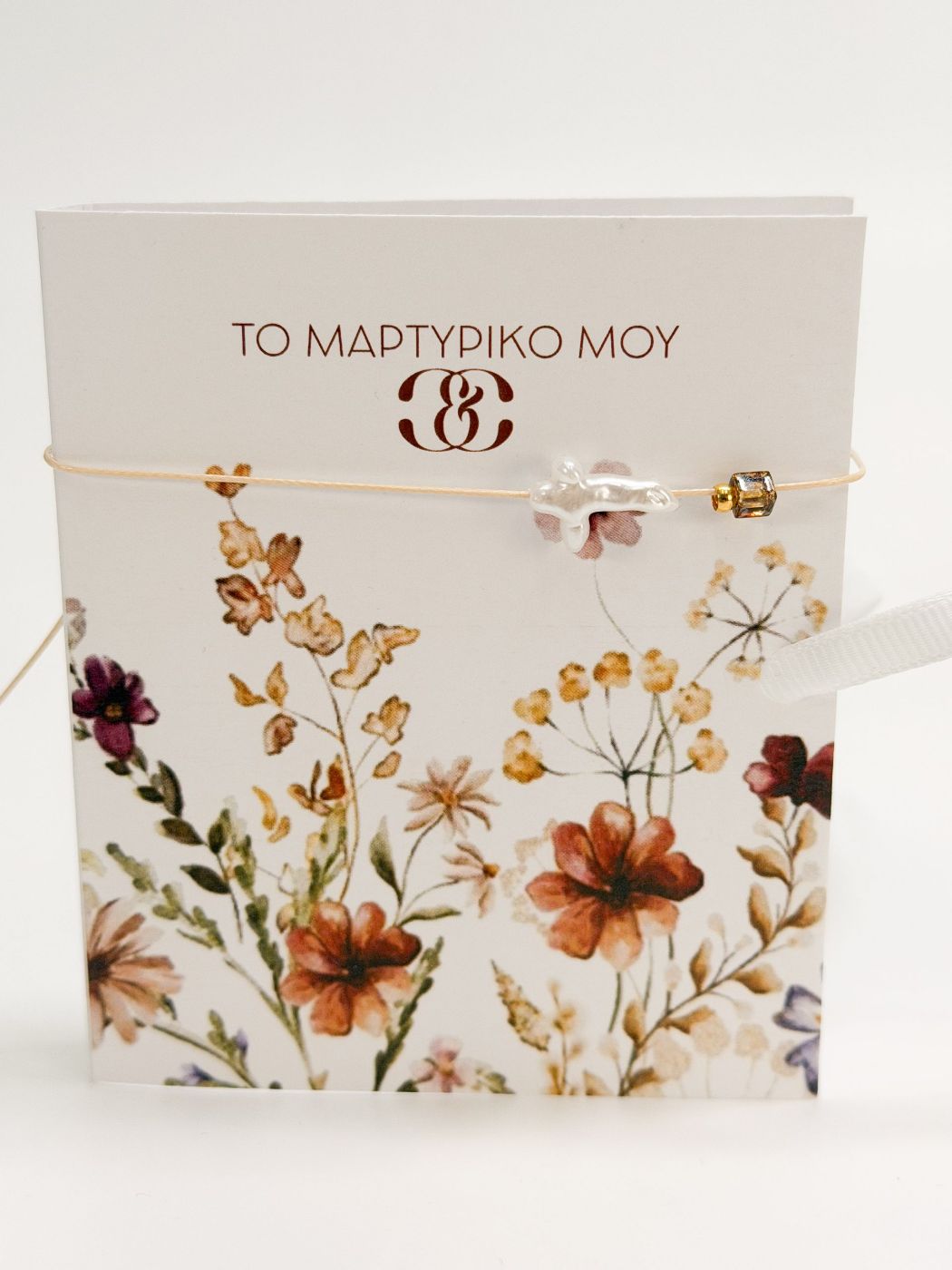 Μαρτυρικό βραχιόλι με περλέ σταυρό, εκρού κορδόνι λεπτό και κυβάκι miyuki. Ένα μαρτυρικό δώρο που θα μείνει στους καλεσμένους σας.