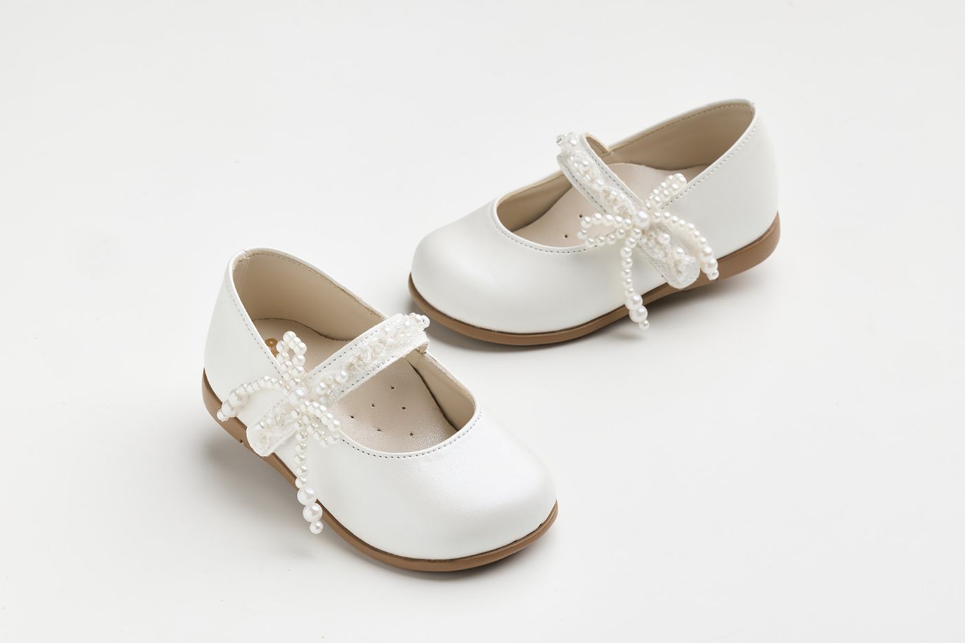 K6112E - Μπαλαρίνα περπατήματος σε εκρού δέρμα διακοσμημένο με πέρλες