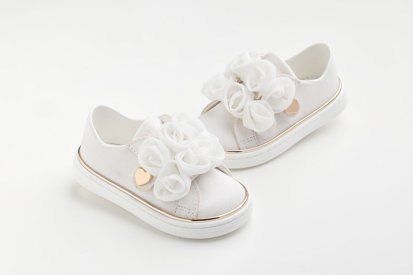 Sneaker περπατήματος σε off white συνθετικό καστορ με χειροποίητα off white τριαντάφυλλα από μουσελίνα